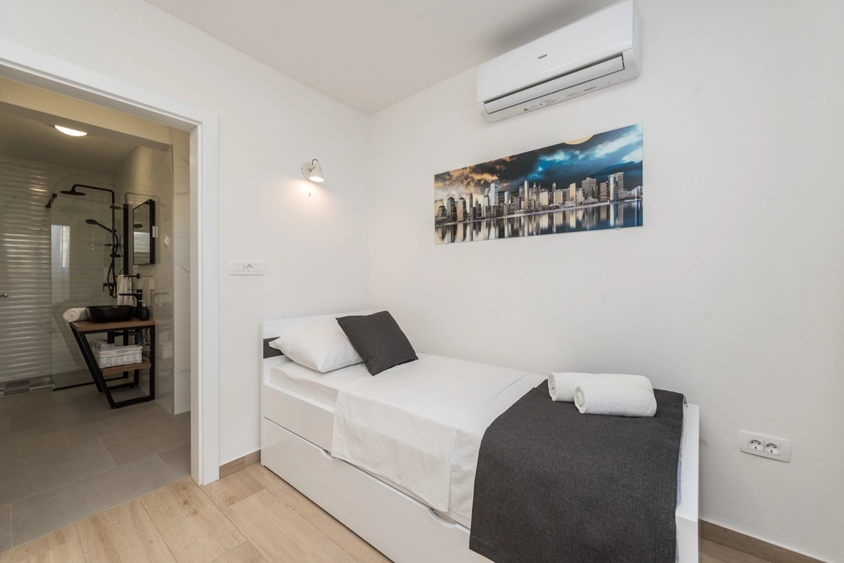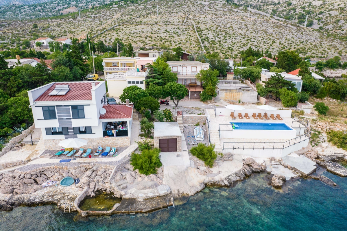 Karlobag is a seaside municipality on the Adriatic coast in Croatia, located underneath the Velebit mountains overlooking the island of Pag. It is a wonderful combination of the Mediterranean and the continents, the crystal clear sea, and the most beautiful Croatian mountain that have only a few minutes drives. If you enjoy a peaceful vacation far from the city crowds, Luxury Villa Solis is a perfect spot for you. Beach is only 3 m away. The closest market is 5 km away from the property, while restaurants and bars are 8 km away. Don't miss out on visiting Nacional Park Paklenica which is located only 38 km away.