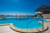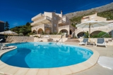 Spacious common sun terrace fitted with sunbeds and parasols, shared outdoor seasonal swimming pool as well as outdoor furniture are at your disposal.