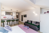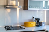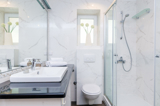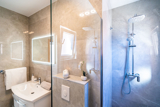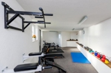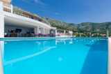 A shared outdoor swimming pool with sun umbrellas and sun beds is at the guests disposal, so as gym facilities.