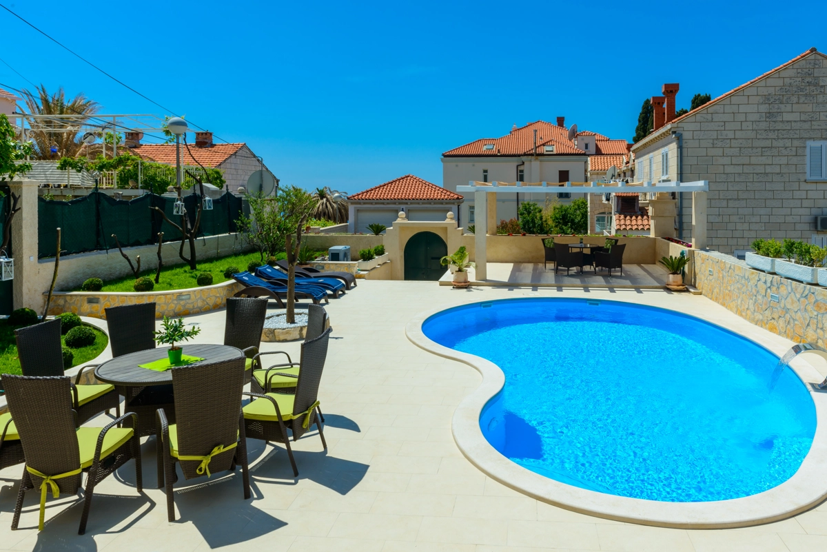 Located 900 meters from the Old City Walls, Villa Ida offers furnished terrace and heated swimming pool (24-25 degrees C). Villa accommodates up to 11 persons (children under 4 years free), offering five bedrooms, dining area, 2 bathrooms & 2 toilets, garden with BBQ and terrace with sunbeds, parasols and dining area.